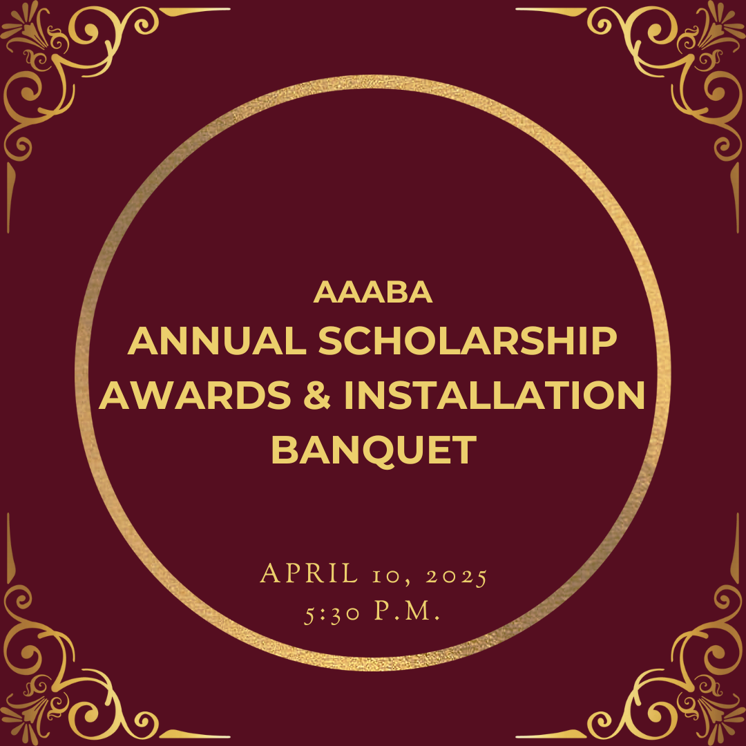 Please join us at the 2025 AAABA Annual Scholarship Awards & Installation Banquet on Thursday, April 10, 2025. This event will take place at Great Wall Cuisine located at 3446 W. Camelback Road, Phoenix, Arizona 85017.